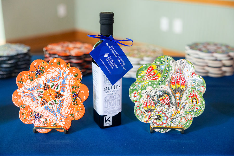 The Foundation presented luncheon attendees with a choice of two gifts, both of which commemorated the recent Clergy International Study Cohort journey through Greece and Turkey: a bottle of Greek olive oil or a handmade Turkish trivet.