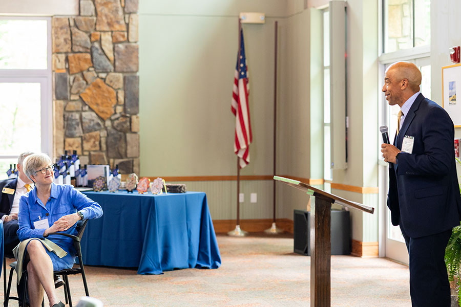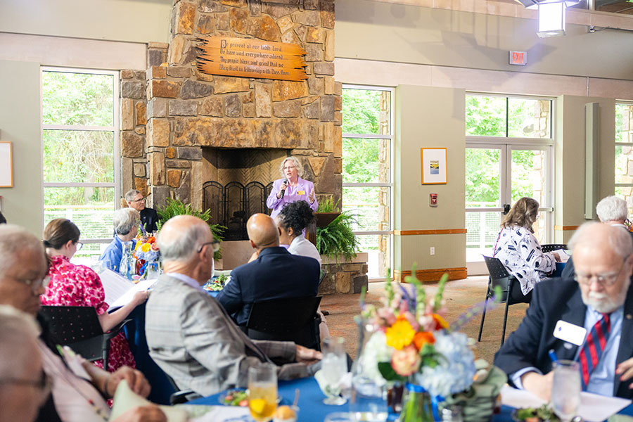 Members of the Methodist Foundation for Arkansas Bishops’ Club gathered Friday, May 16, 2025, at Camp Aldersgate in Little Rock. They were pleased to hear from keynote speaker The Honorable Mark Leverett, who serves as State District Judge for District 31, Little Rock 3, but who received the invitation to address the Bishops’ Club primarily because of another leadership role he holds: Chair of the Oscar Washington Jr. Educational Fund.